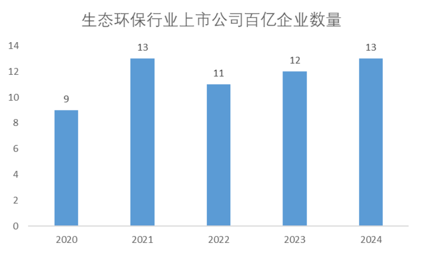 2024年上市公司百亿俱乐部,一共有13家(其中,港股中国水务和齐合环保尚未披露年报,但从历史数据来看,这两家公司2024年规模应都在百亿以上)。从2020年到2024年的五年间,百亿俱乐部的企业数量一直在发生微妙的变化,具体数据可以参考下图: